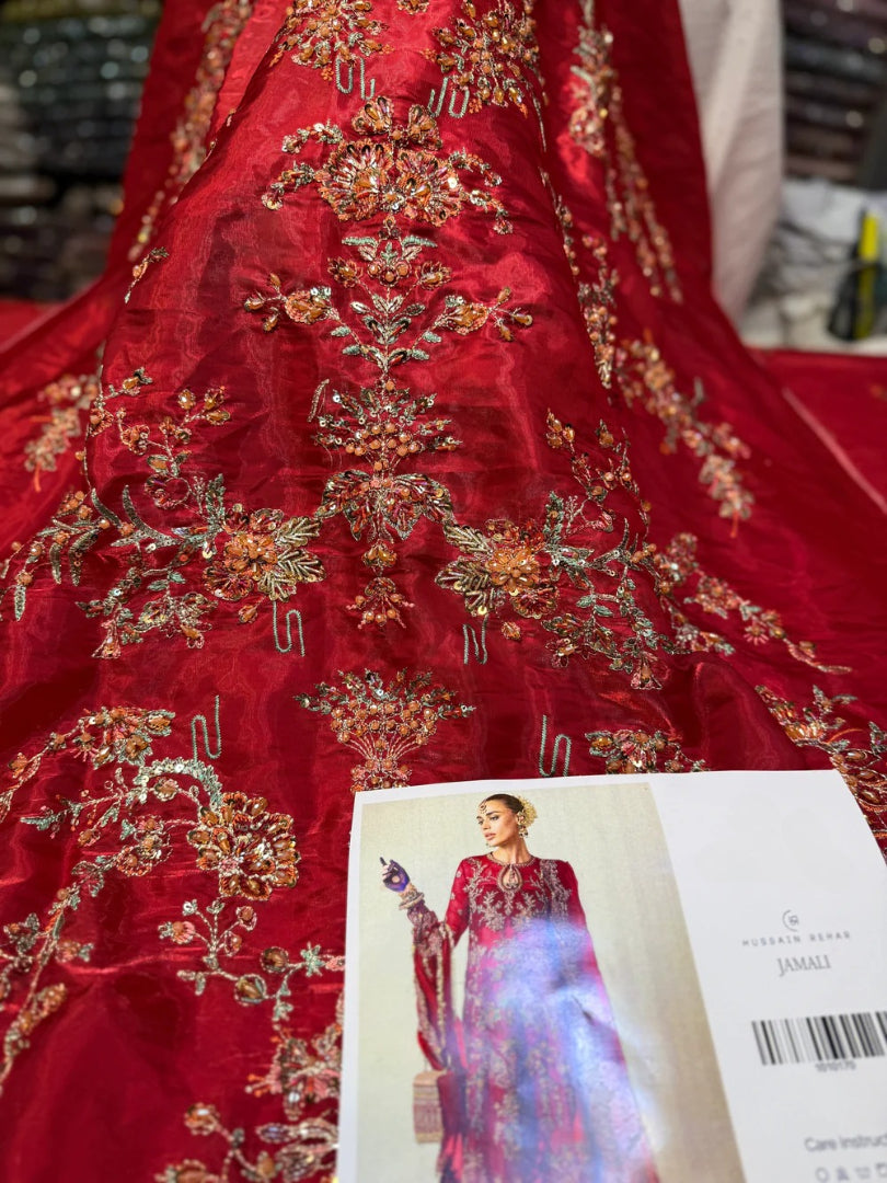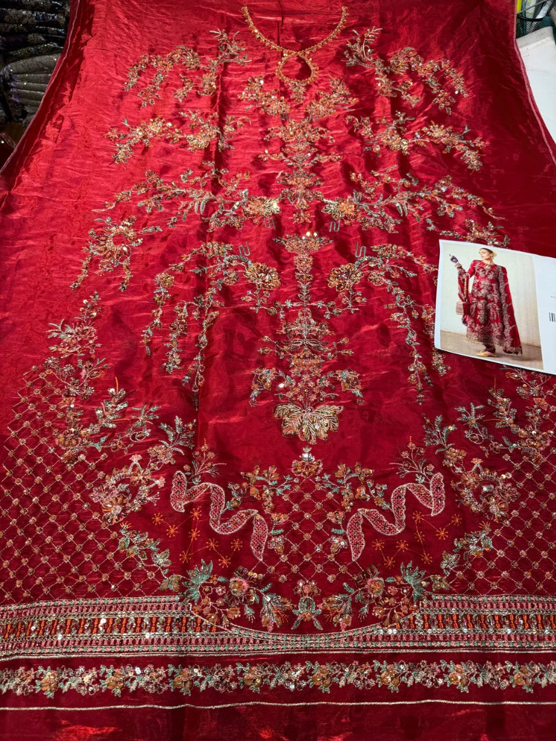 Shisha silk front with handcrafted neckline, hand-applied pearls, and delicate embellishments