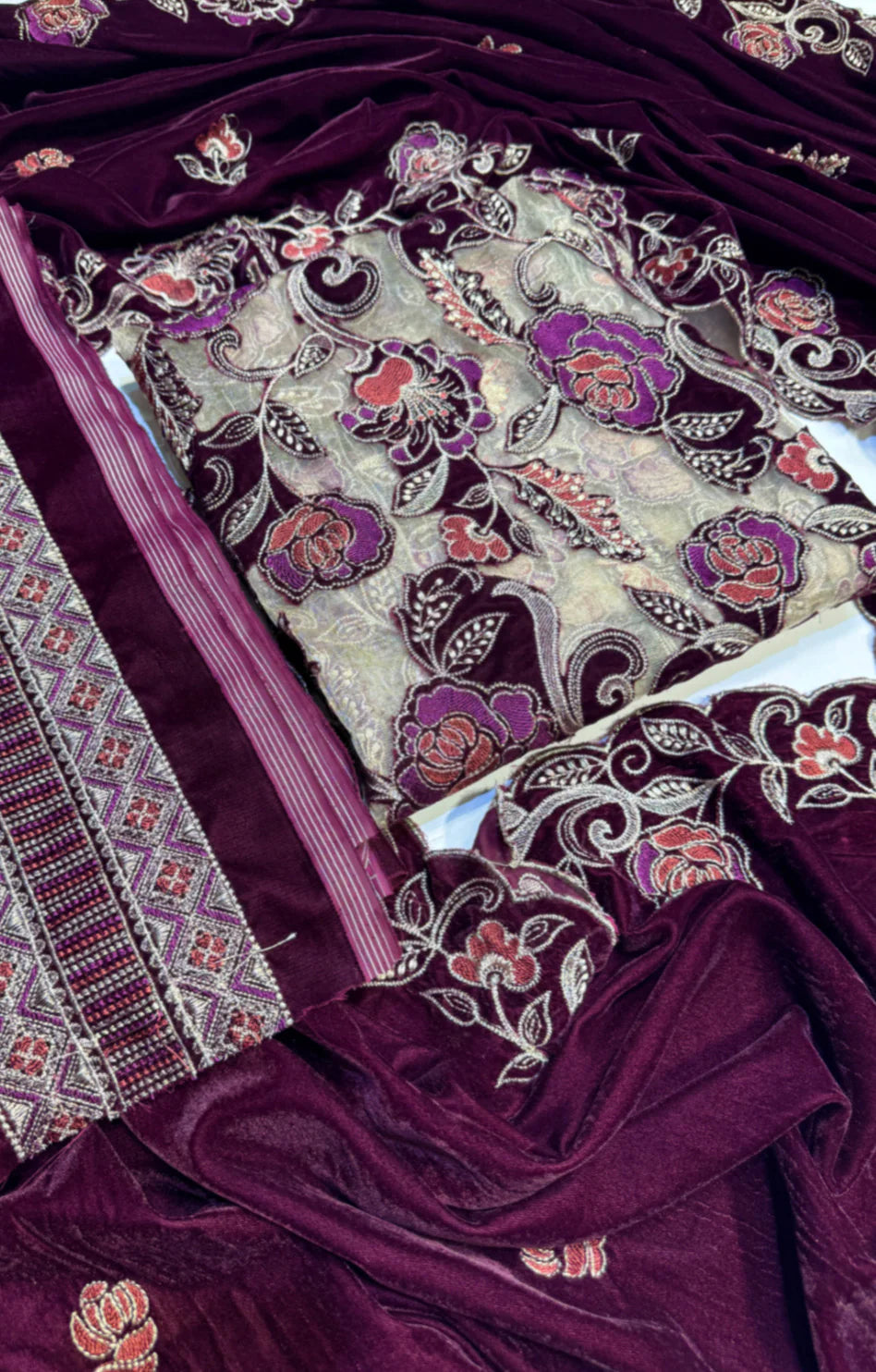 Hussain Rehar Velvet 05 Deep Purple 3Pc