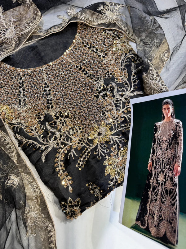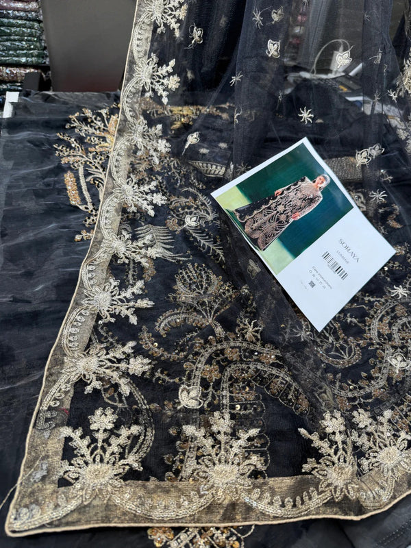 Ready-to-wear embroidered net dupatta adding a soft, elegant drape