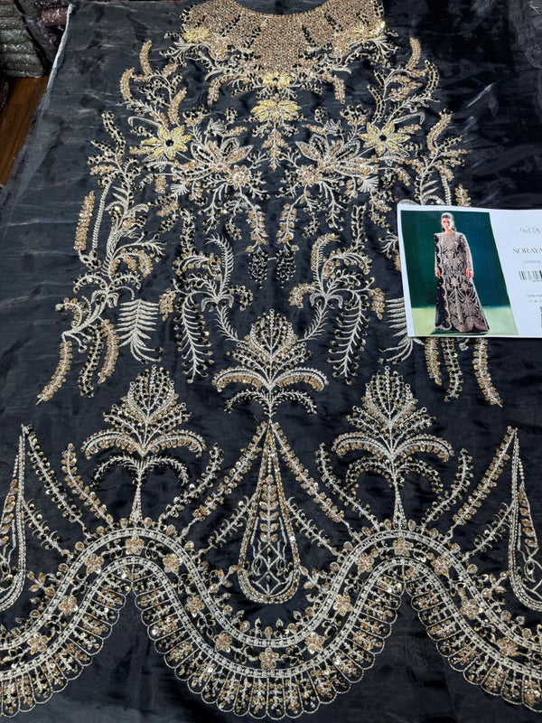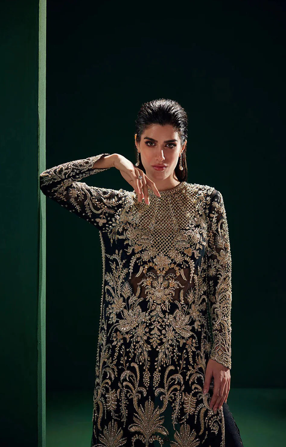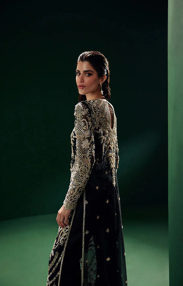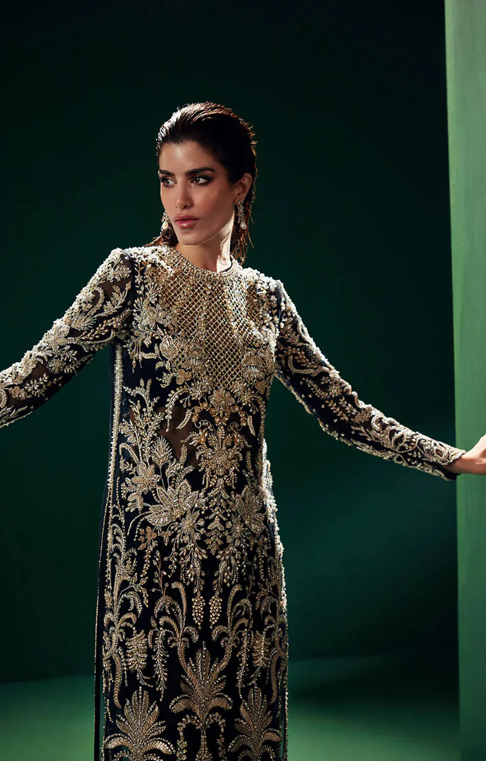 Embroidered shisha silk front, back, and sleeves with intricate hand embellishment for a graceful finish