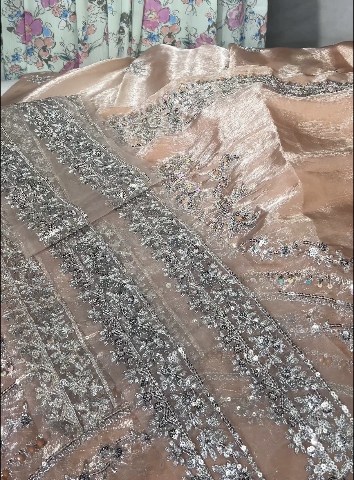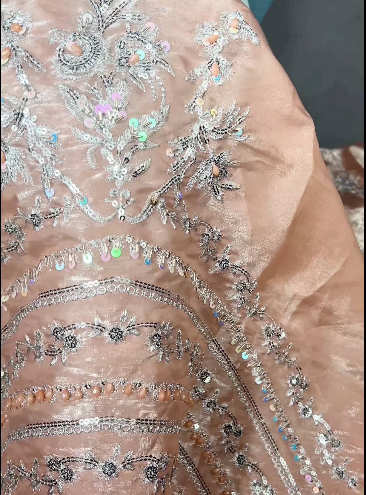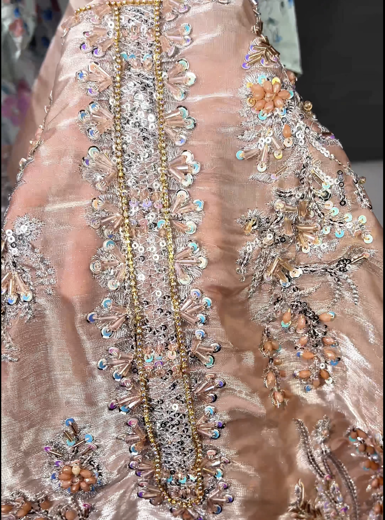 Shisha silk front with handcrafted neckline, pearls, and delicate hand embellishments