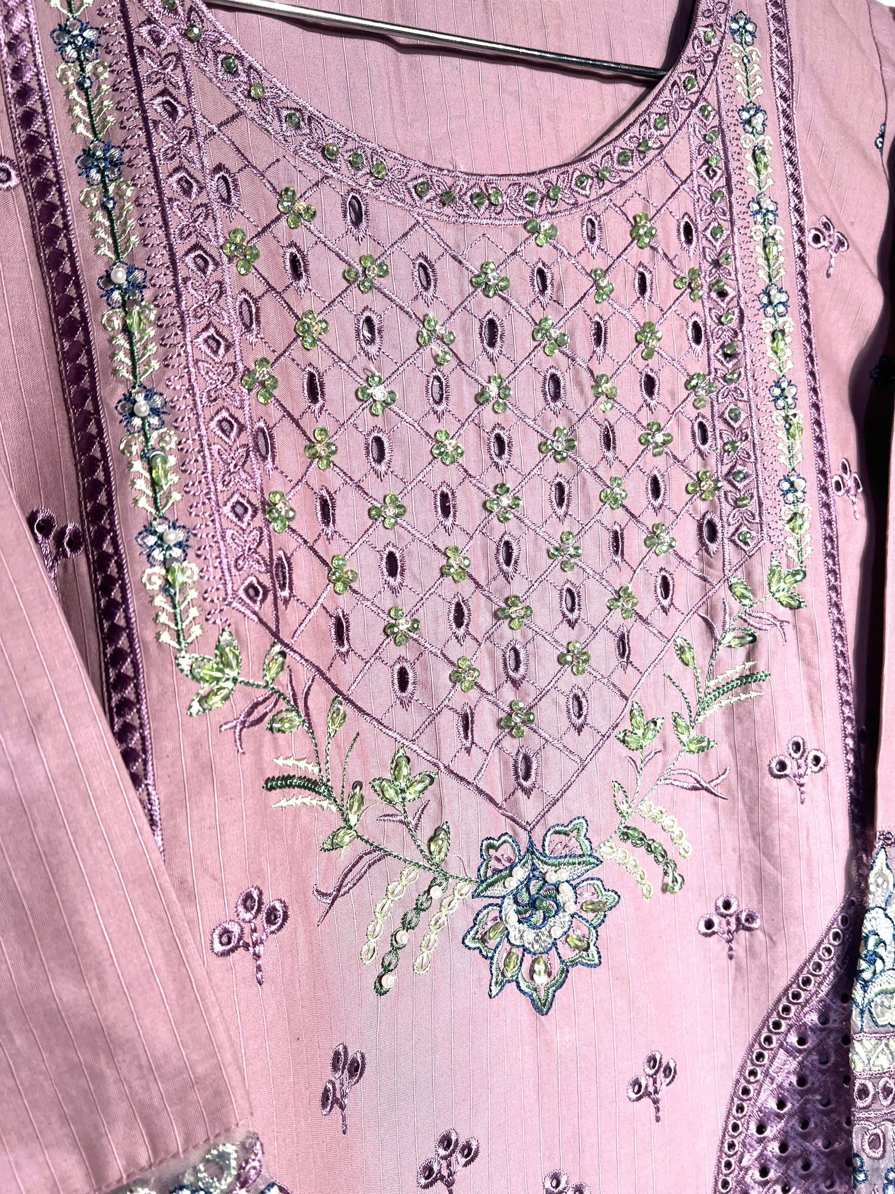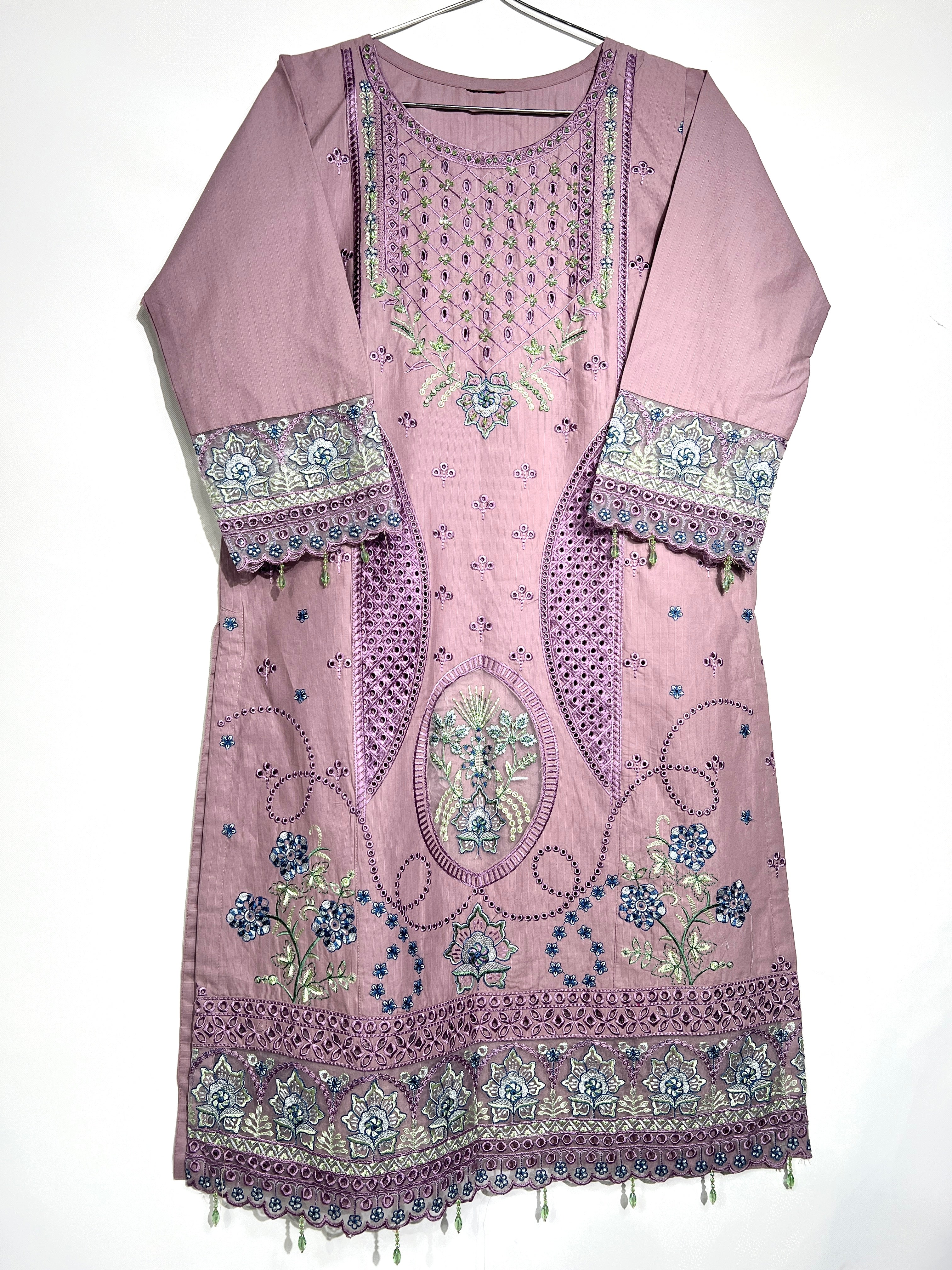 Khaddar shirt featuring exquisite chikankari embroidery on the front and sleeves