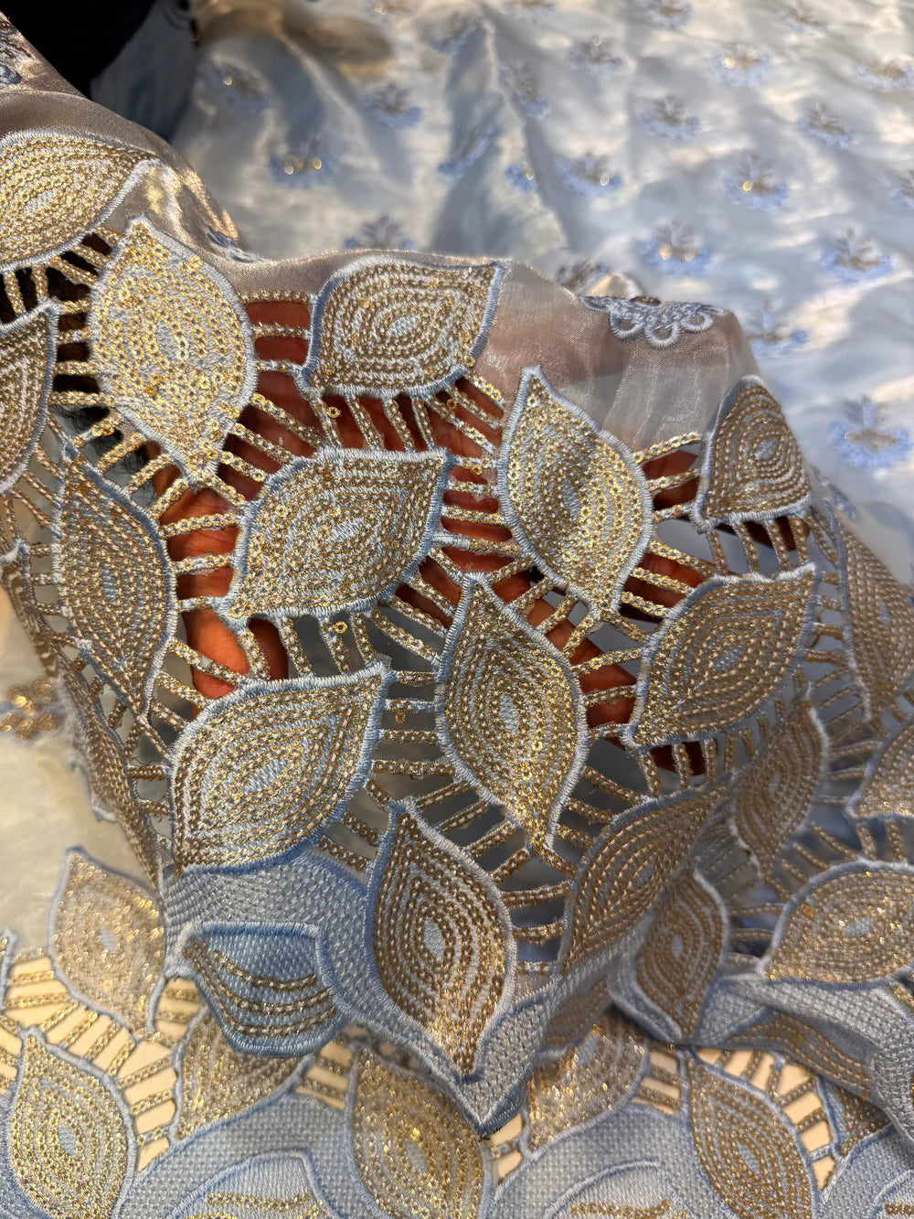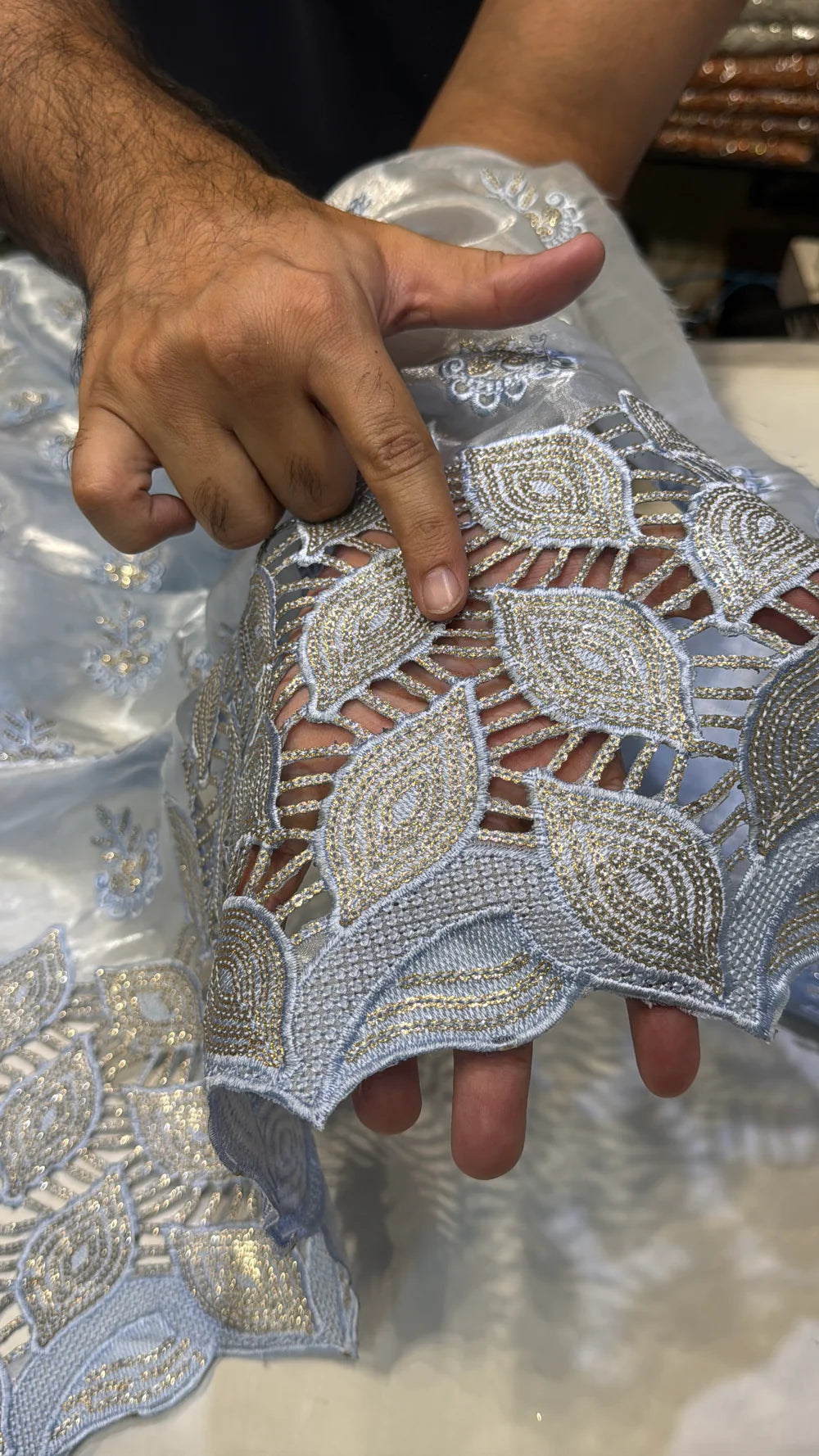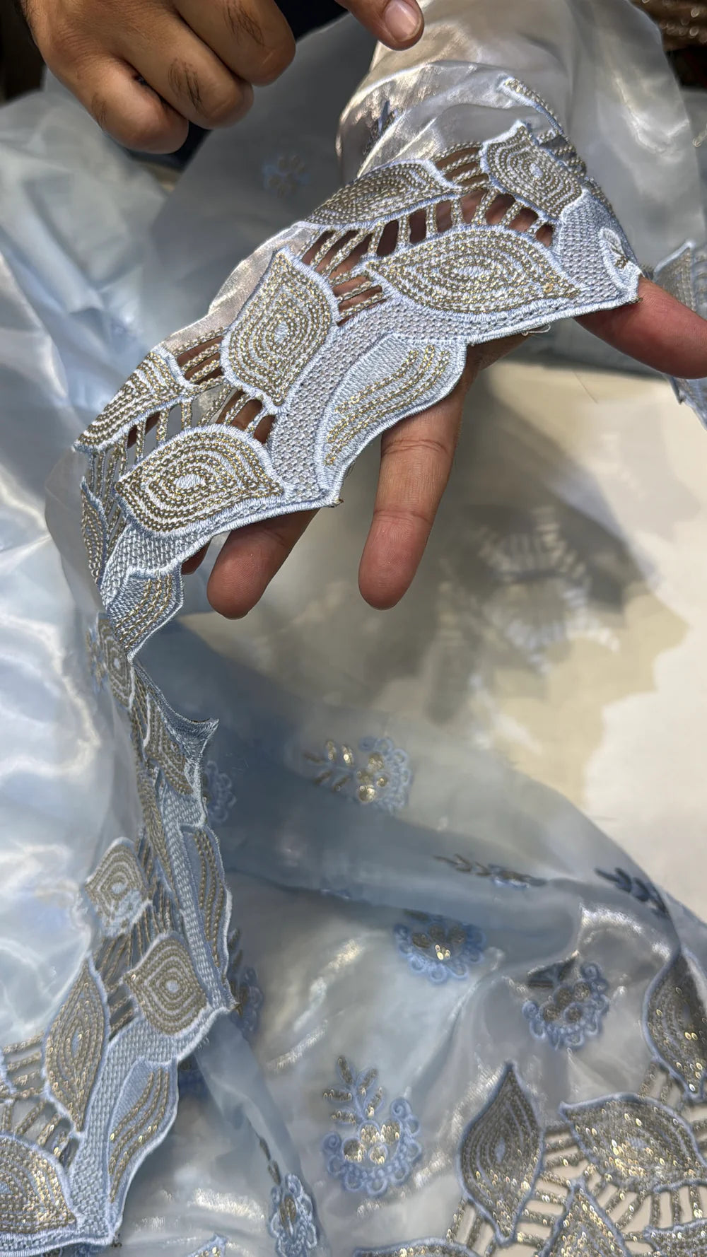 Beautiful Shisha Silk 2-piece suit in a soft ice blue shade.