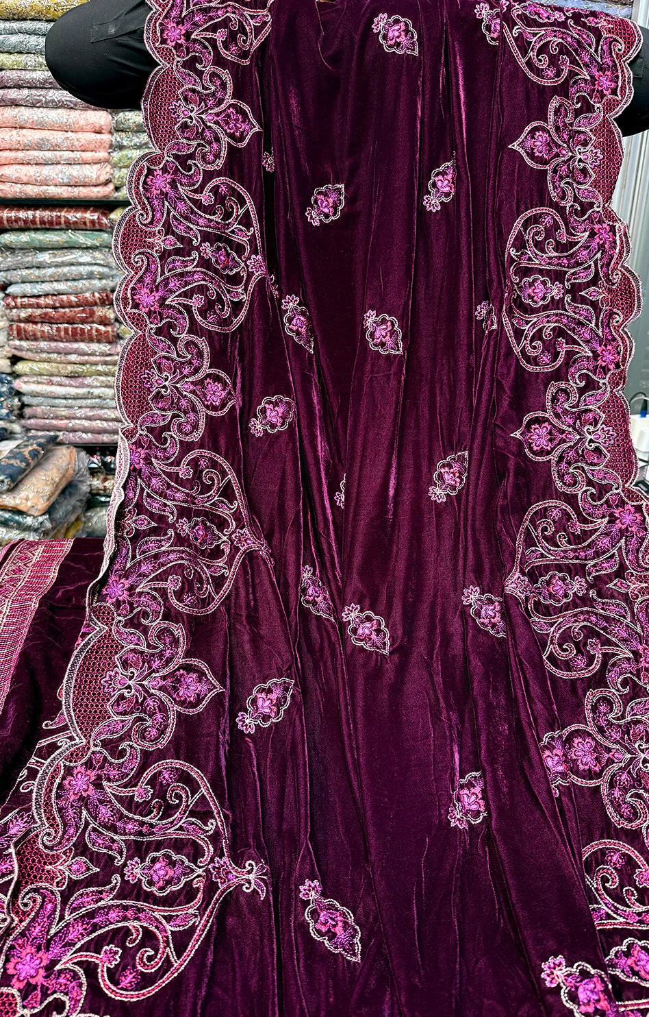 Dupatta: Ready-to-wear embroidered velvet dupatta for a rich, regal finish.