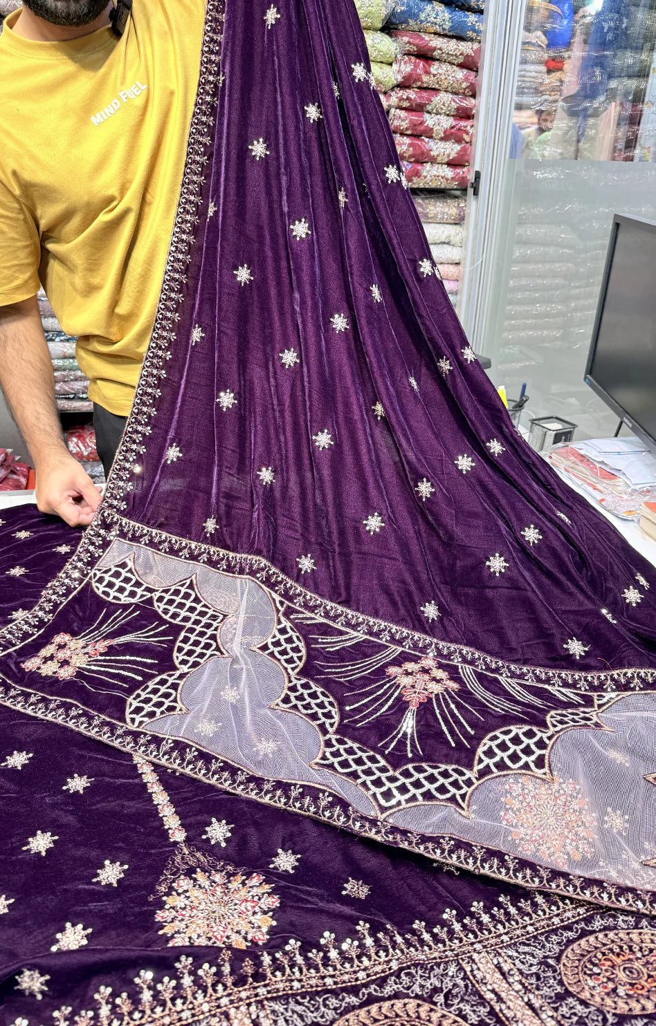 Ready-to-wear embroidered velvet dupatta with elegant cutwork finish