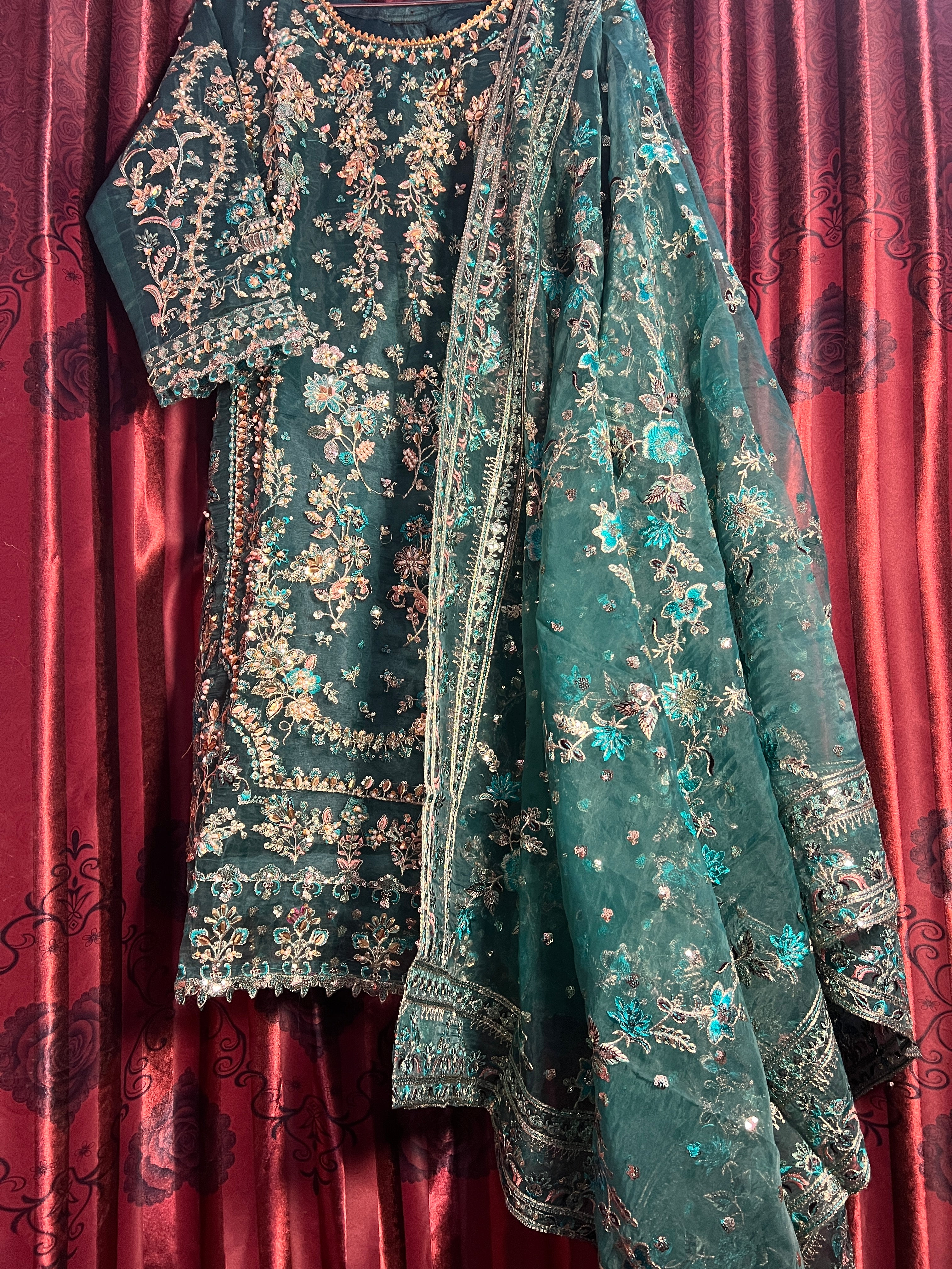 Organza dupatta featuring a delicate 4-sided embroidered border for a refined, classy look