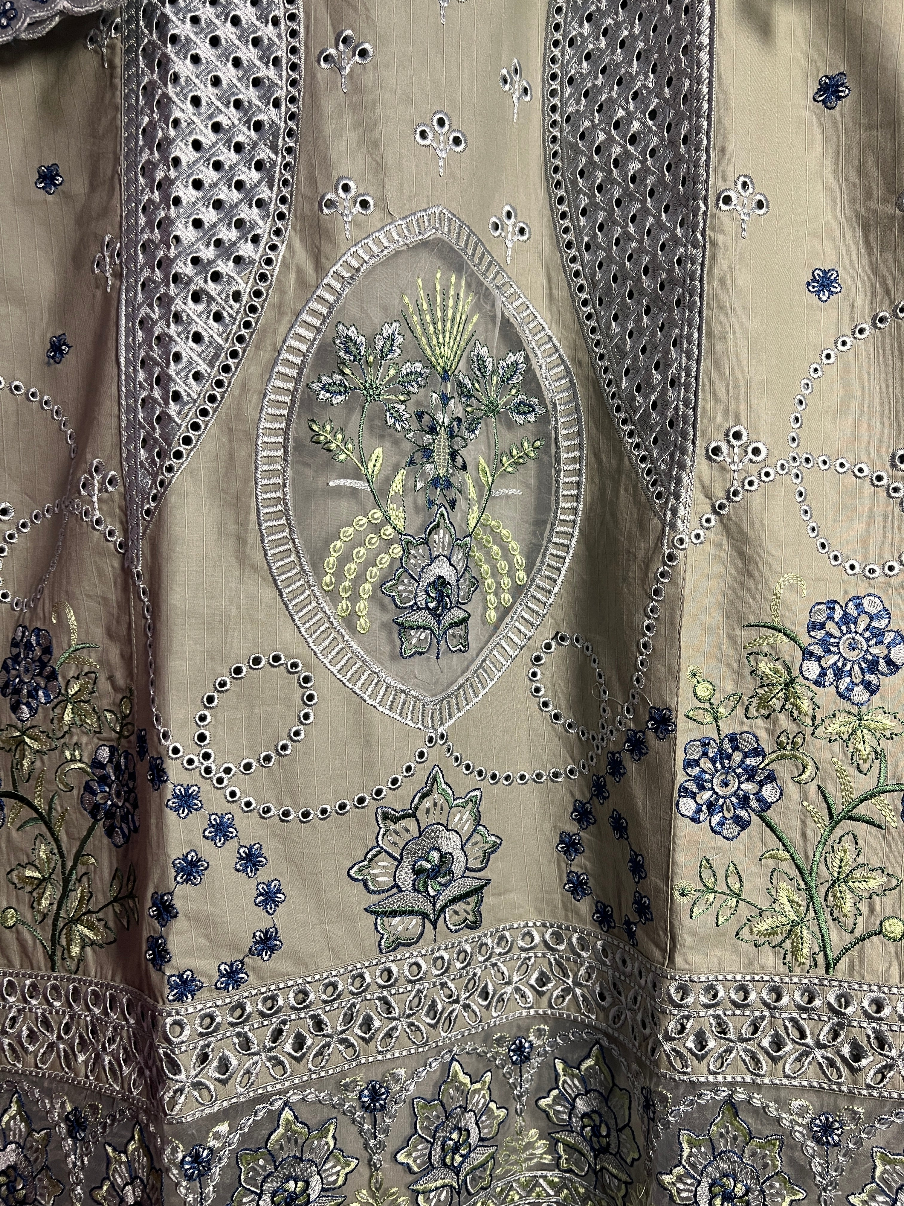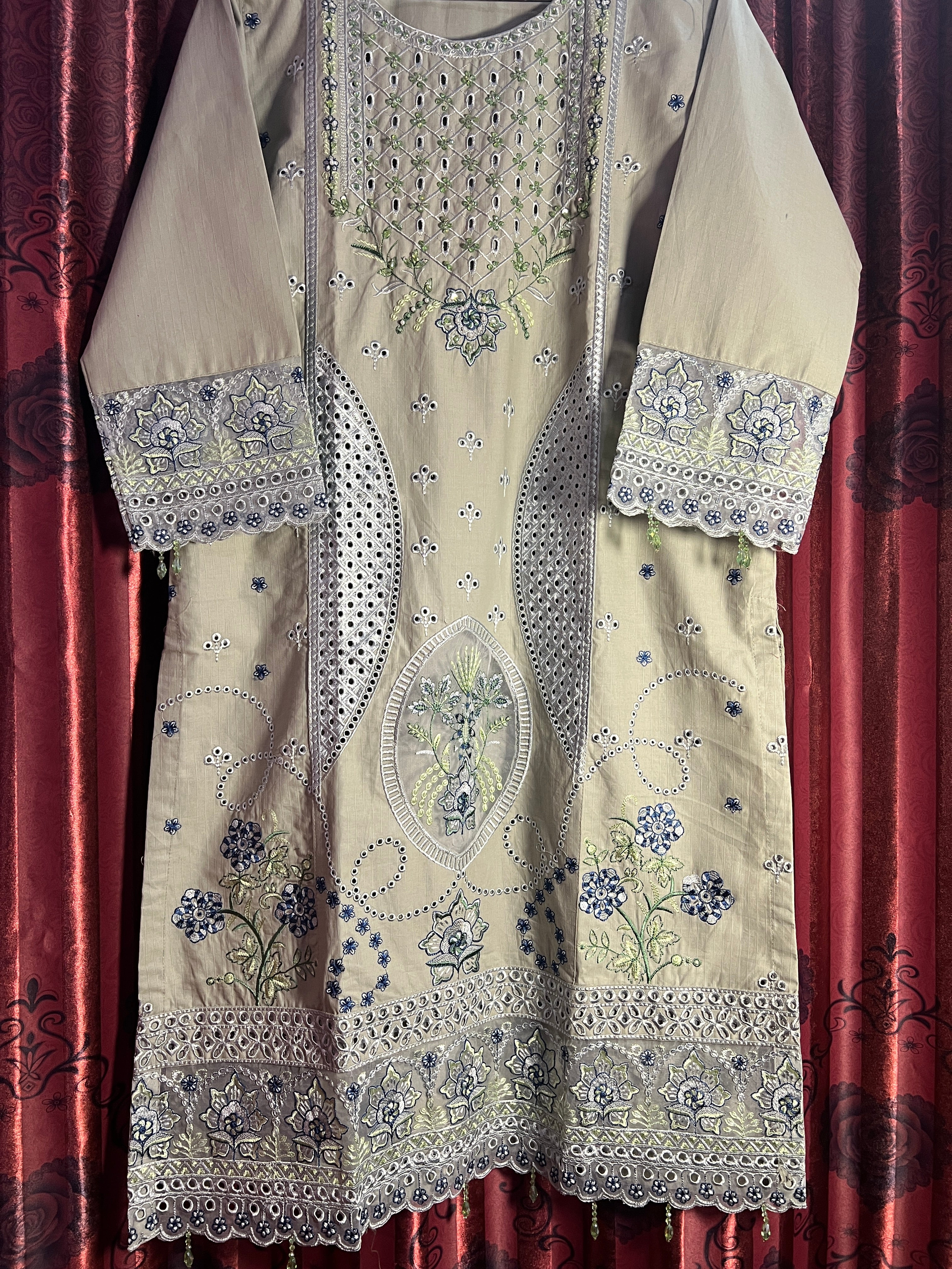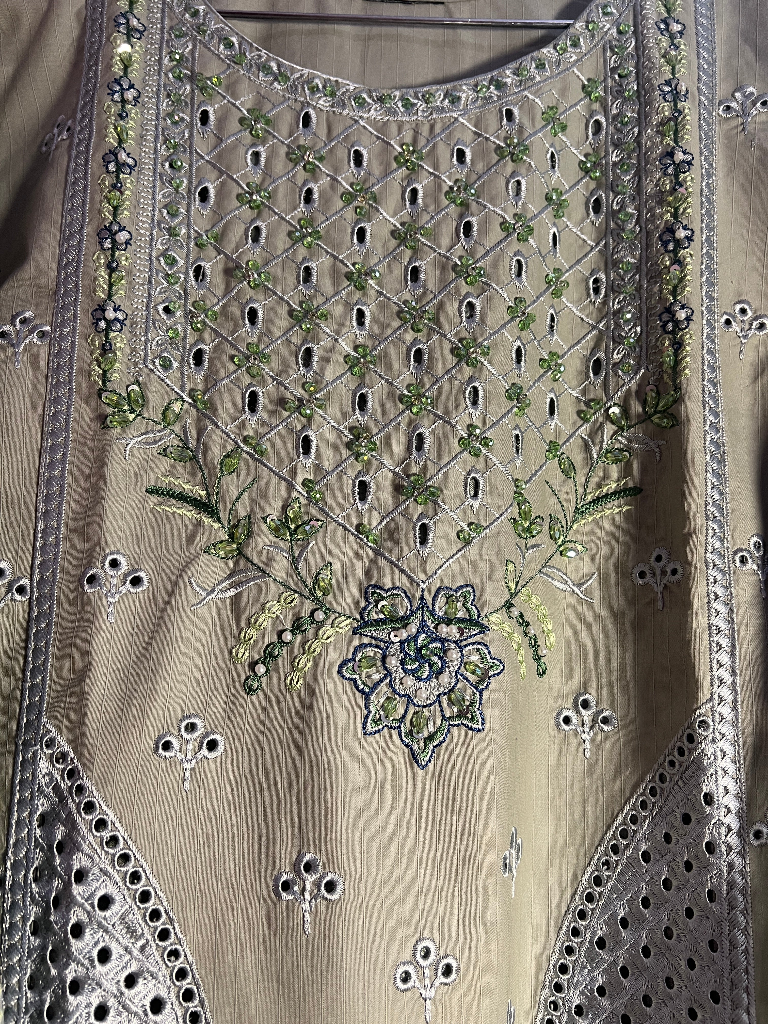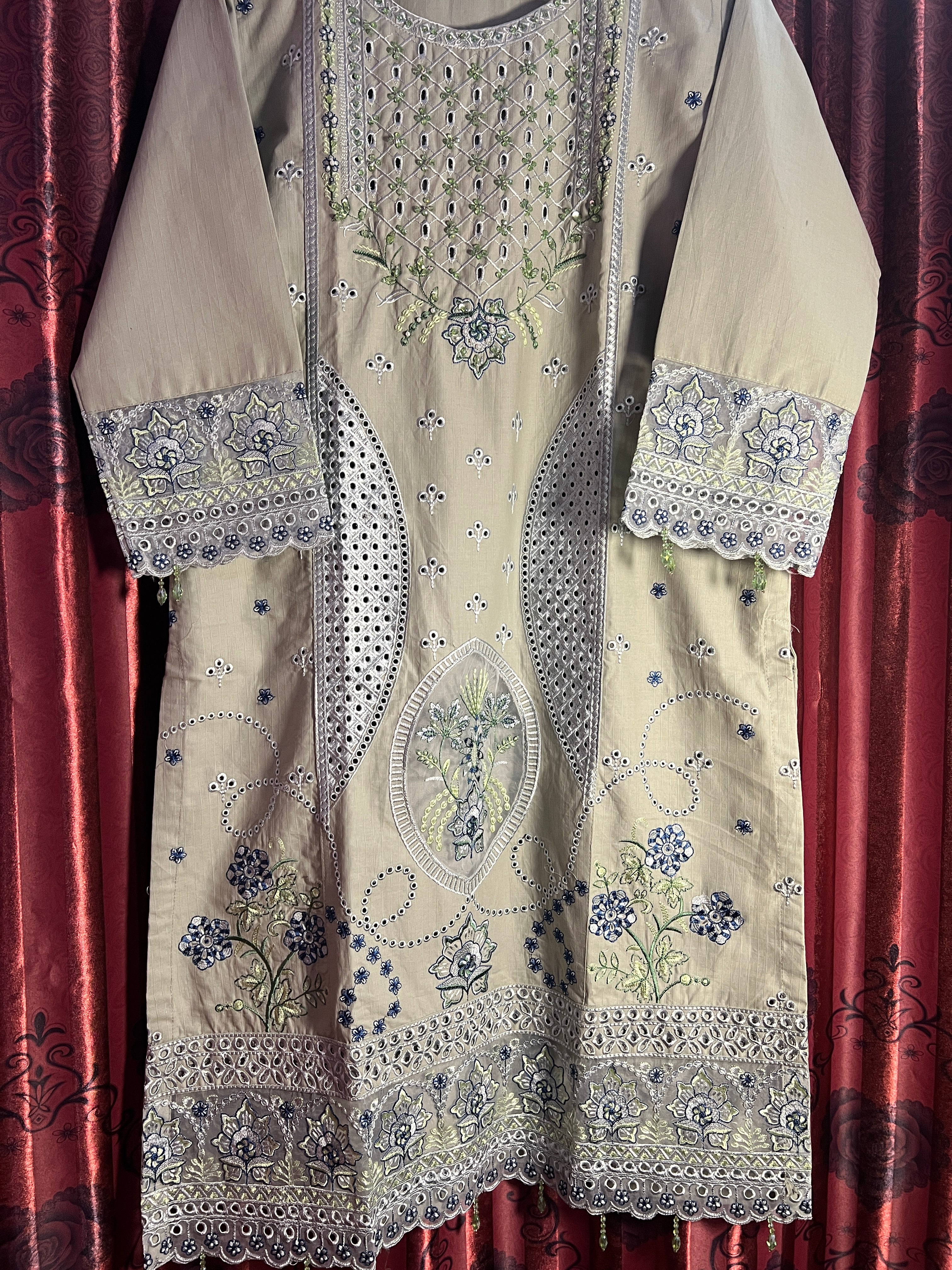 Khaddar shirt featuring exquisite chikankari embroidery on the front and sleeves
