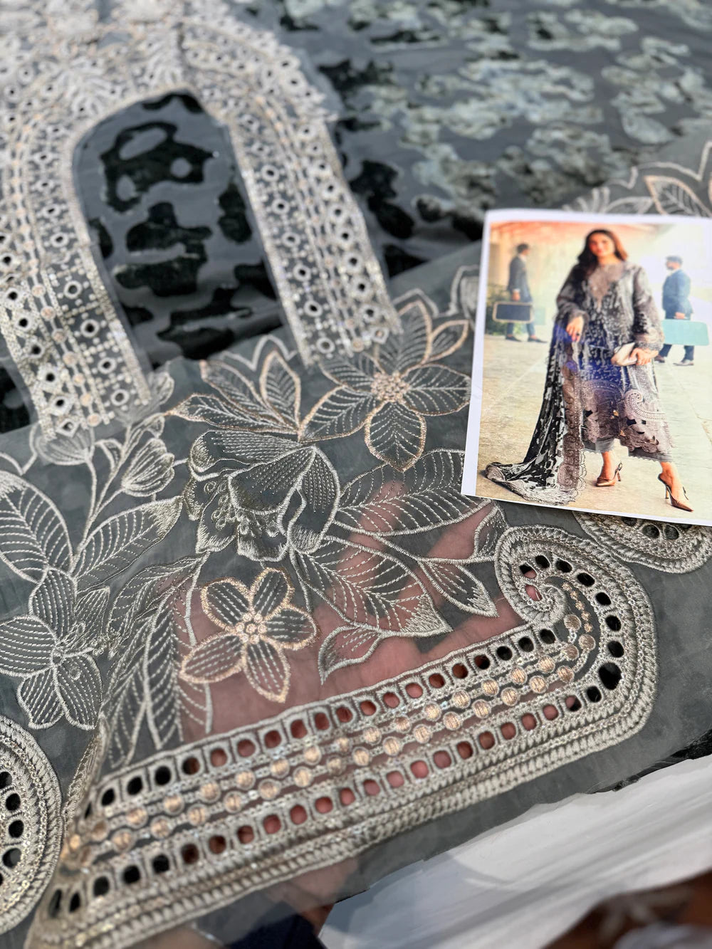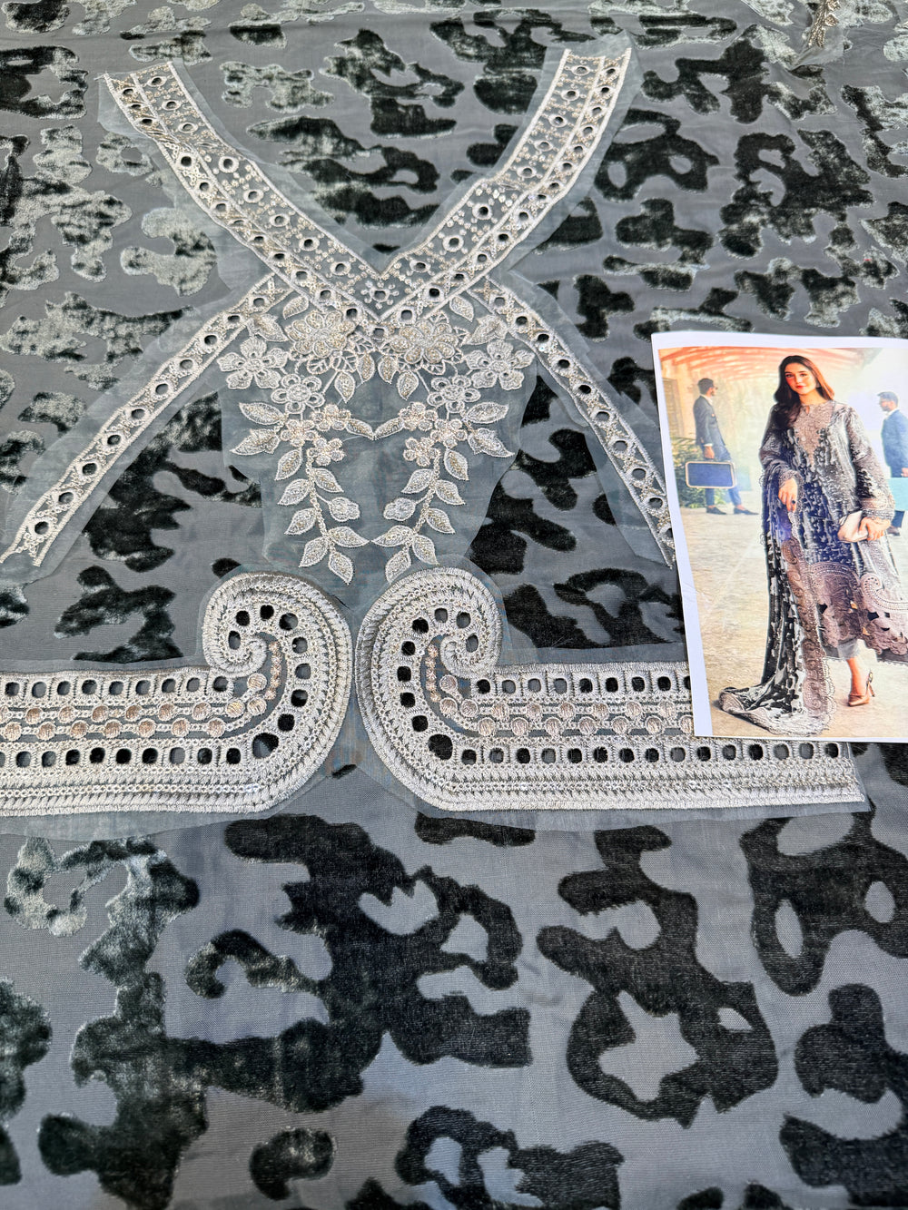 Embroidered velvet cutwork ghera patch