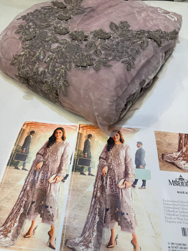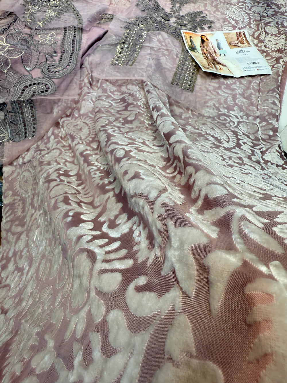 Dyed palachi dupatta finished with an embroidered velvet border — adding depth and sophistication.