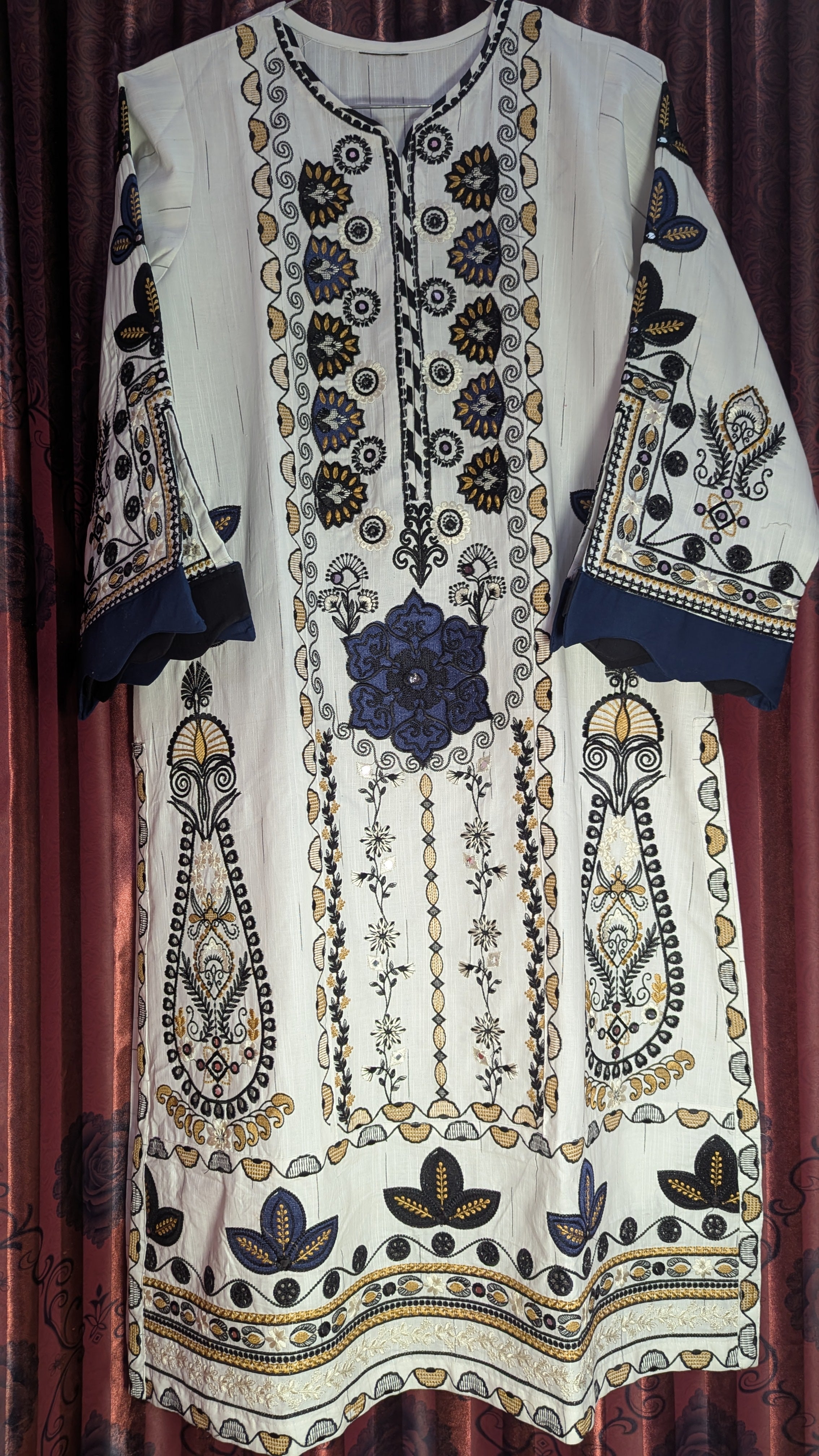 Khaddar shirt featuring exquisite embroidery on the front and sleeves