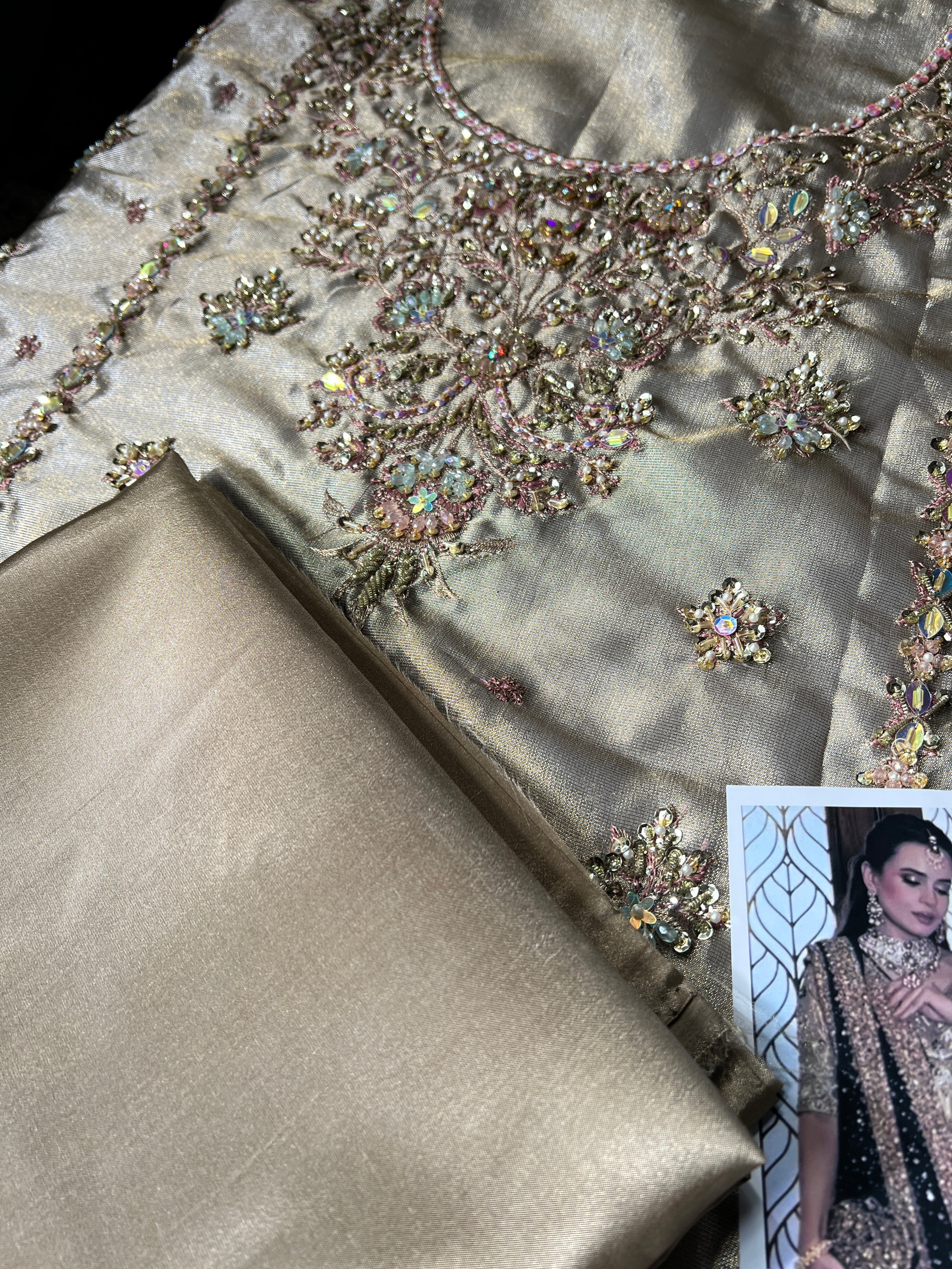 Front adorned with handmade pearl work and hand embellishment