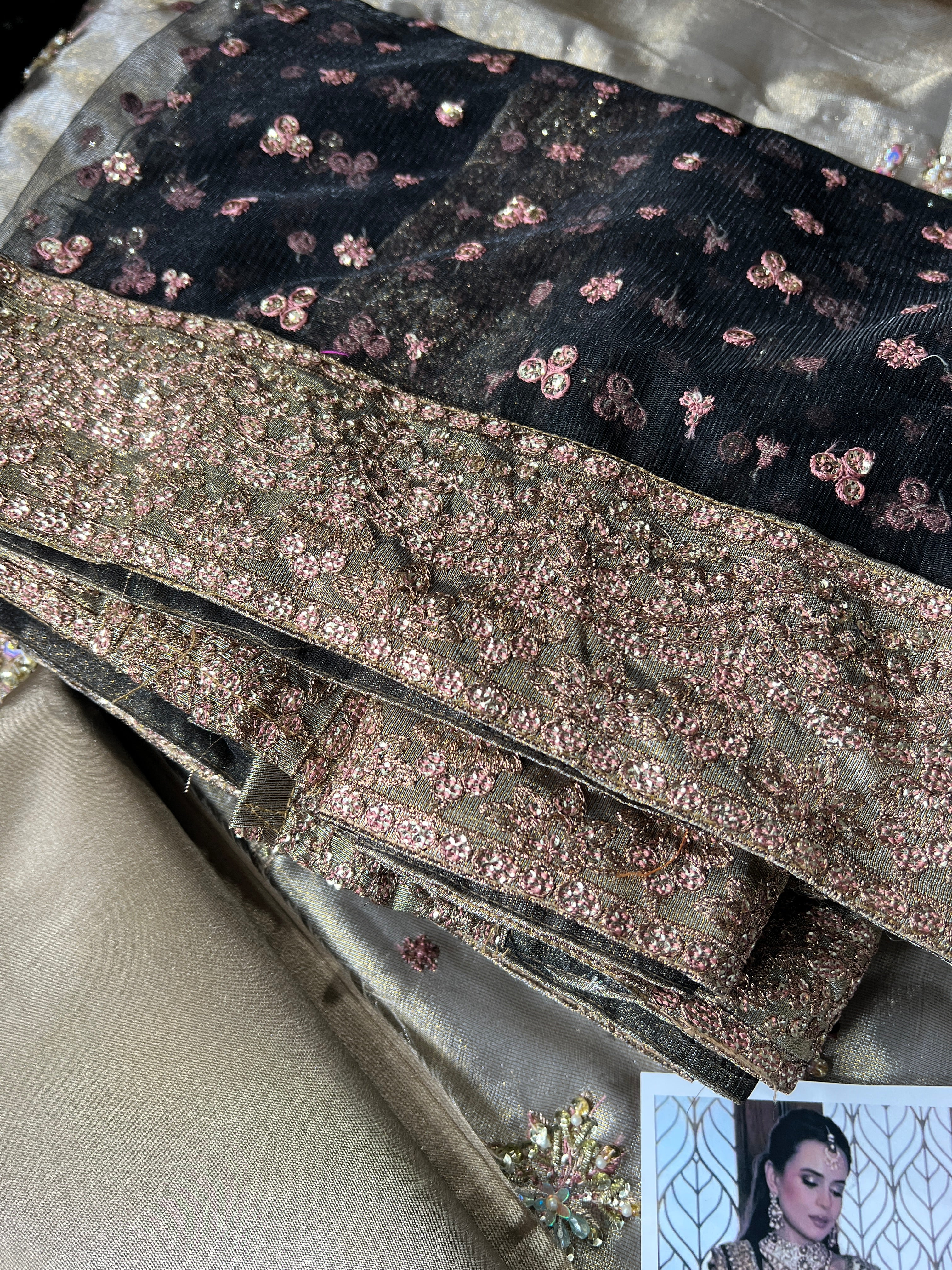 Fully embroidered and hand-embellished masori sleeves