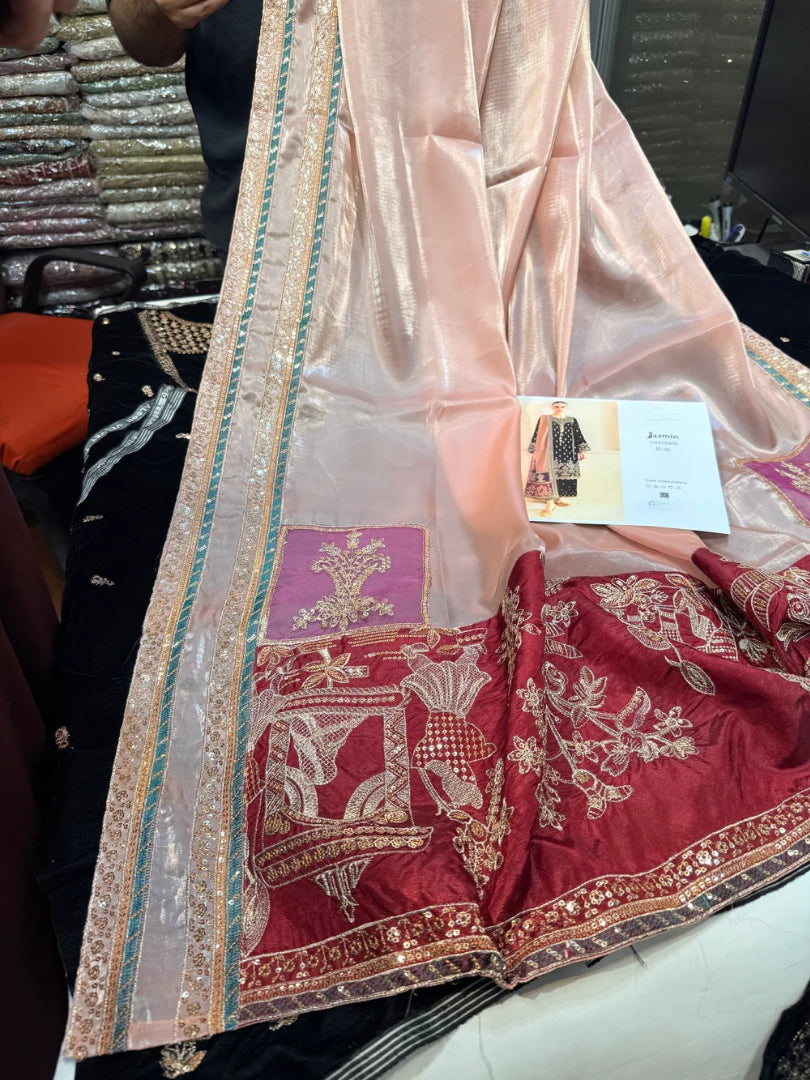 Embroidered Shisha Silk dupatta