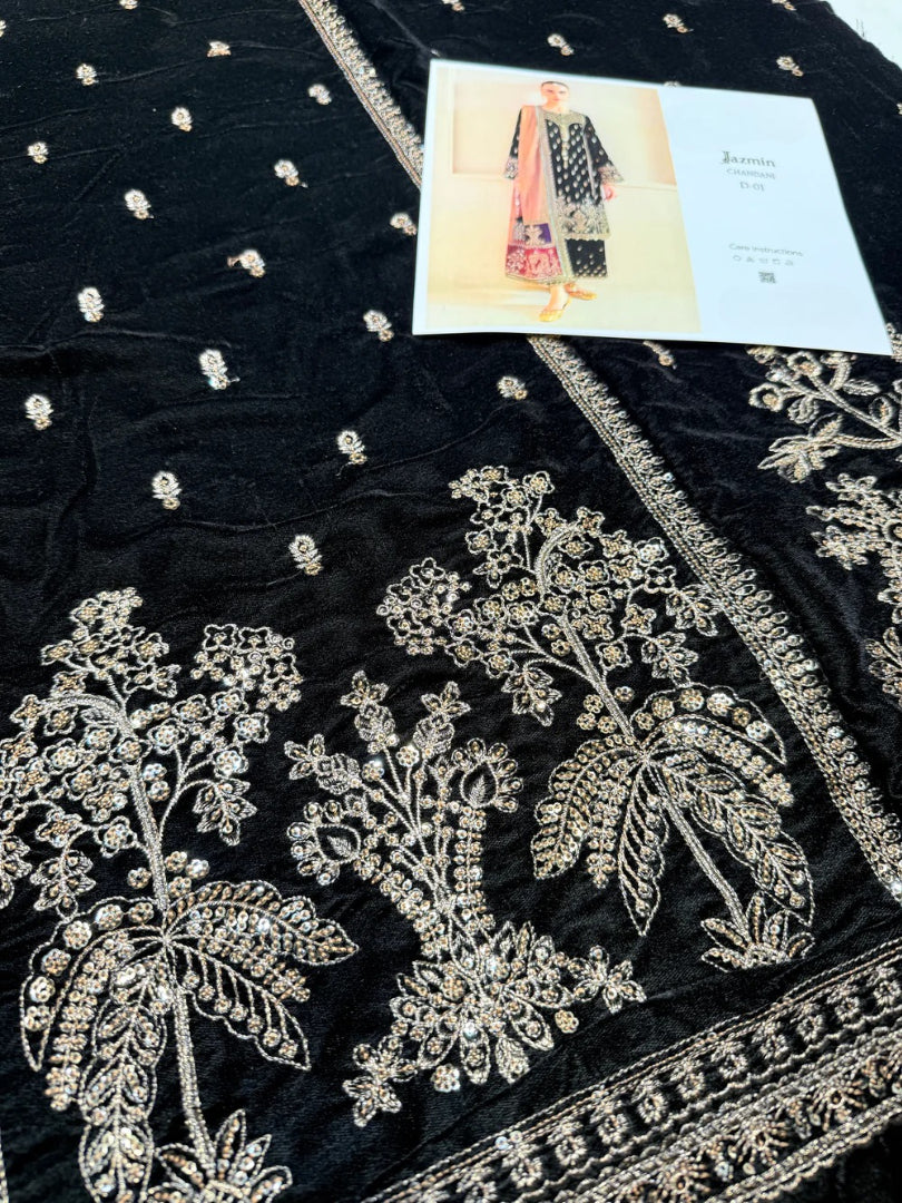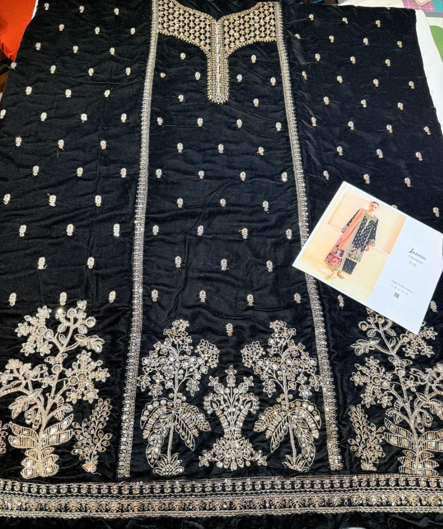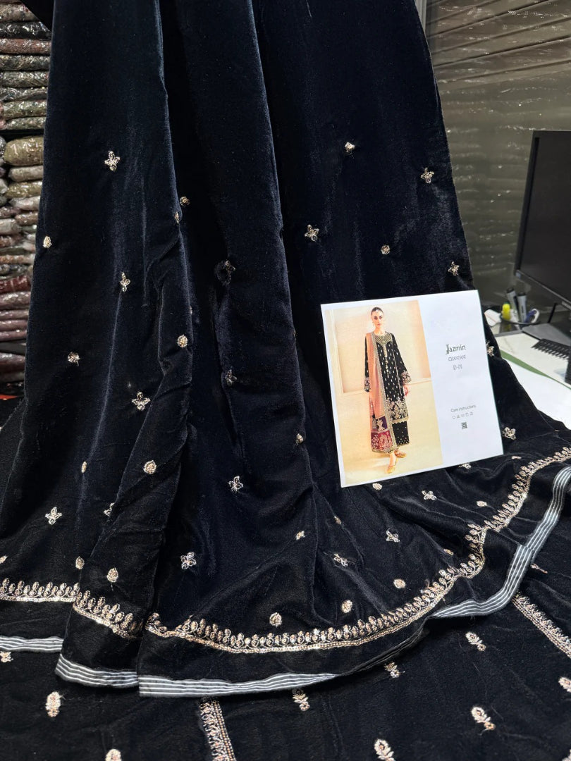 Embroidered pure velvet front