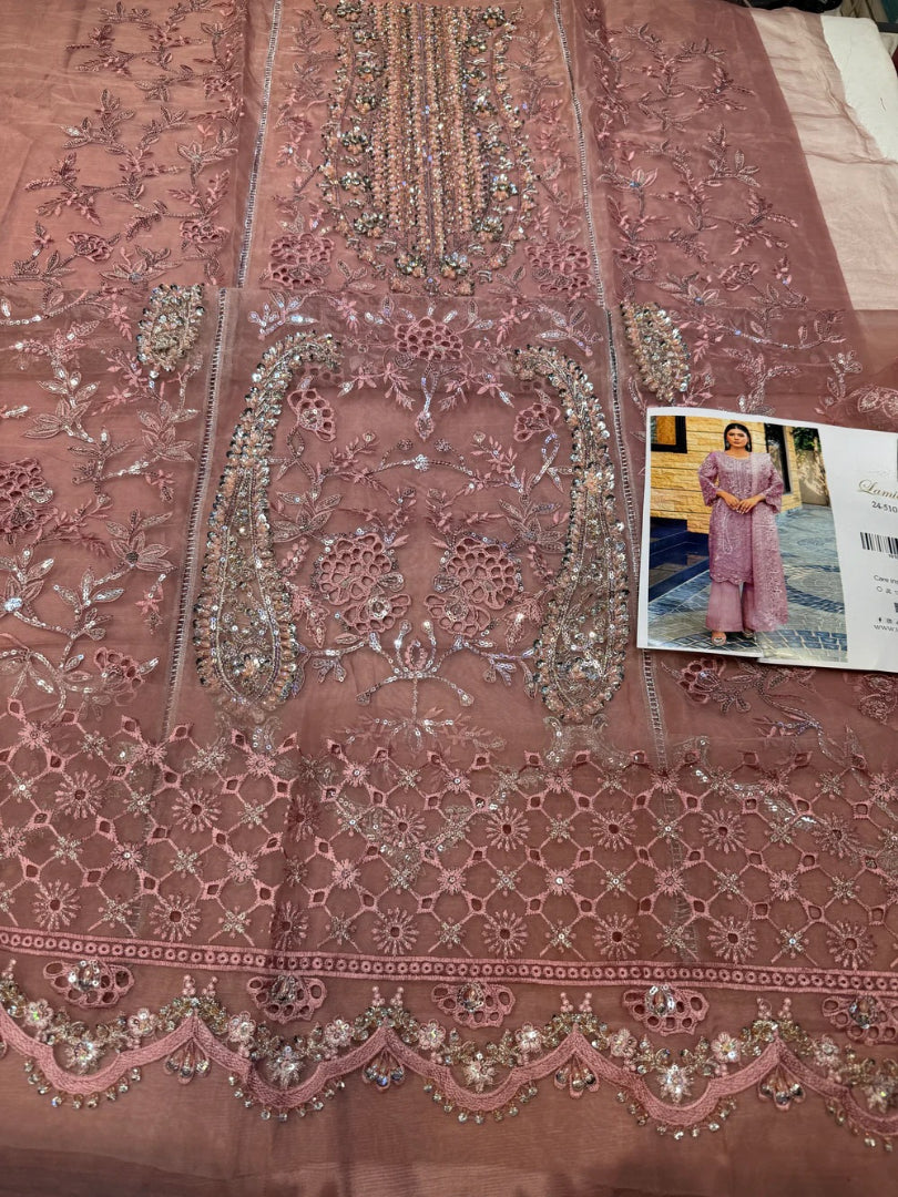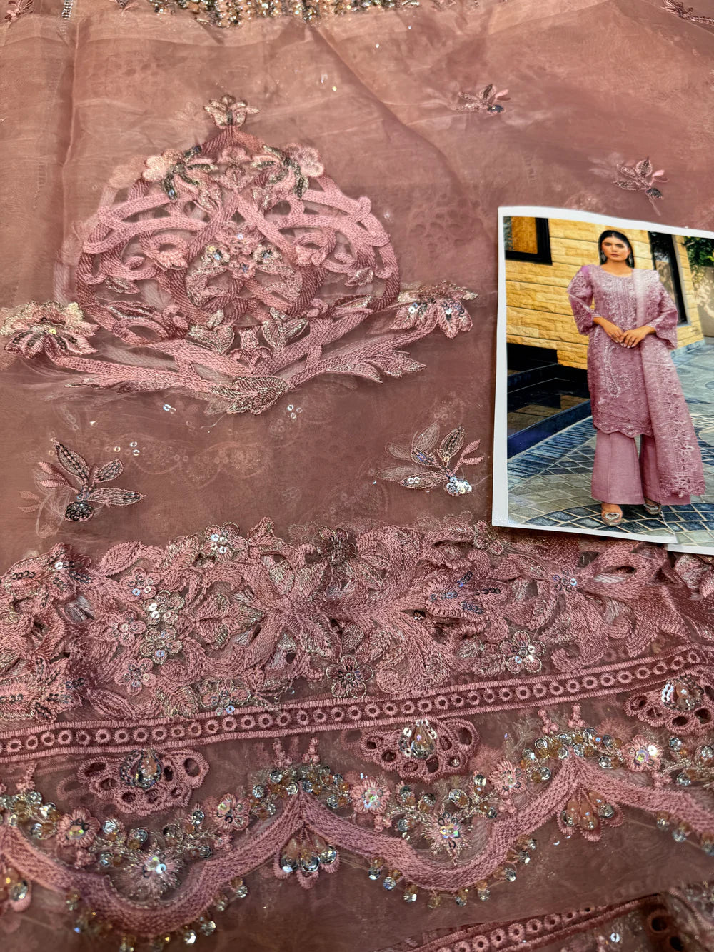 Embroidered organza daman patch featuring adda work, kora, dabka, naqshi, and sequins for front and back