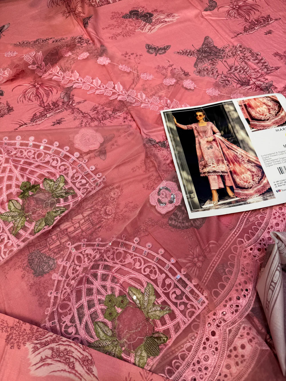 Printed embroidered front