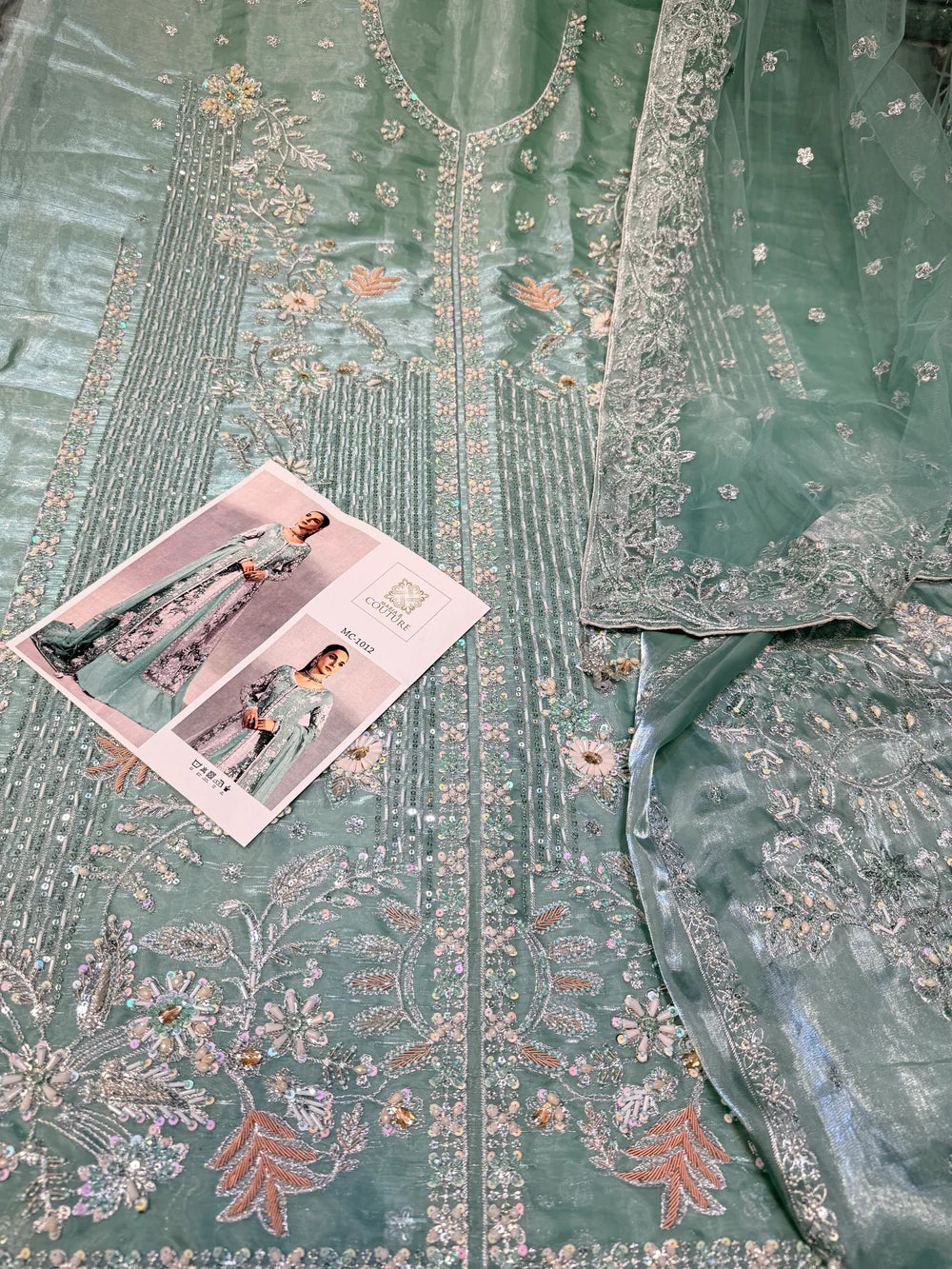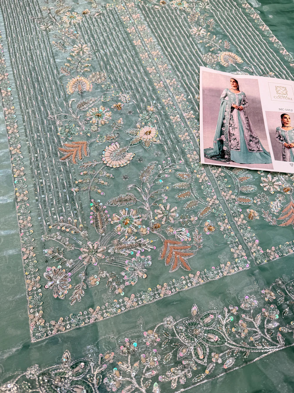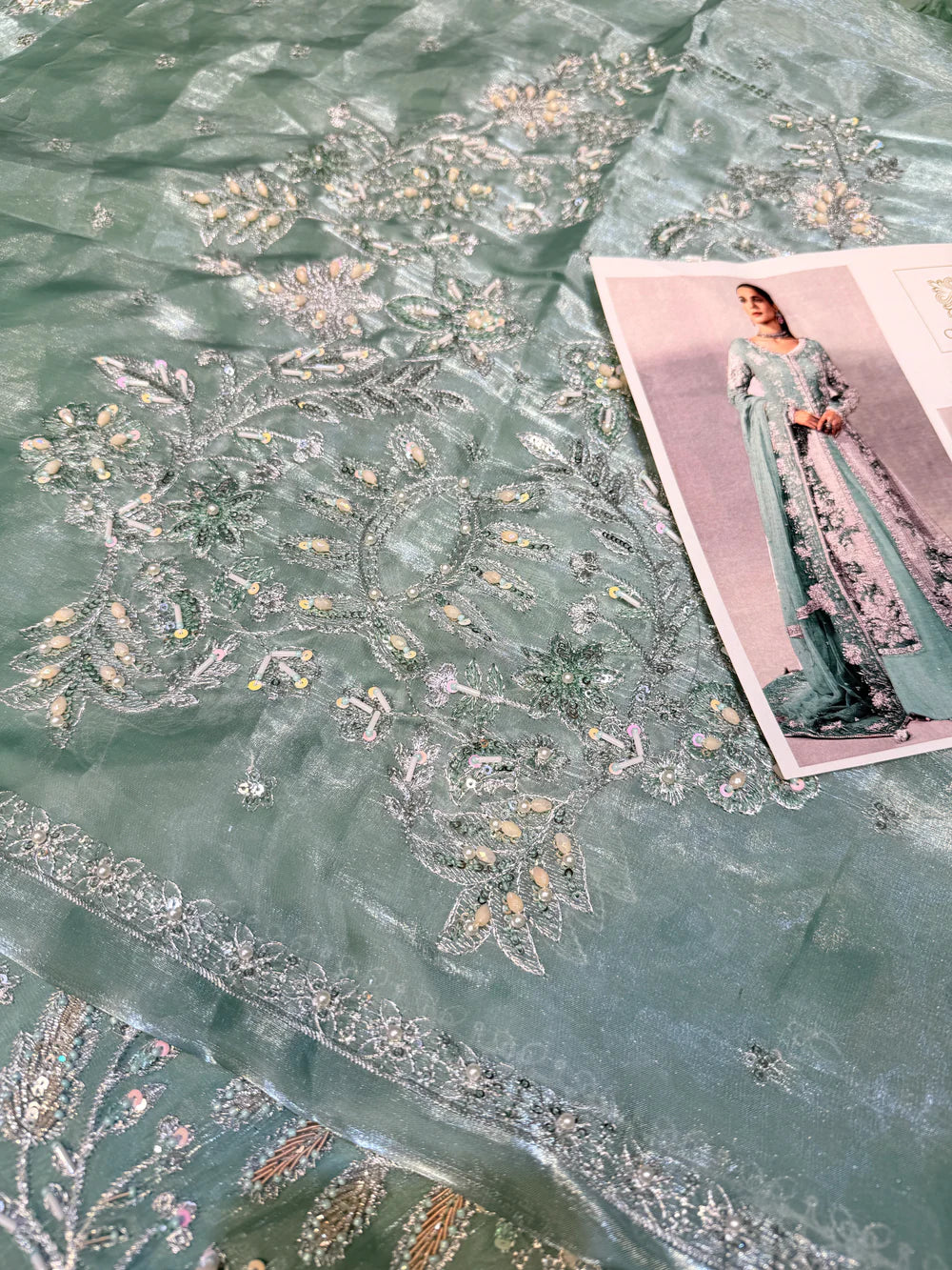 Shisha silk front with handcrafted neckline, pearls, and intricate hand embellishments