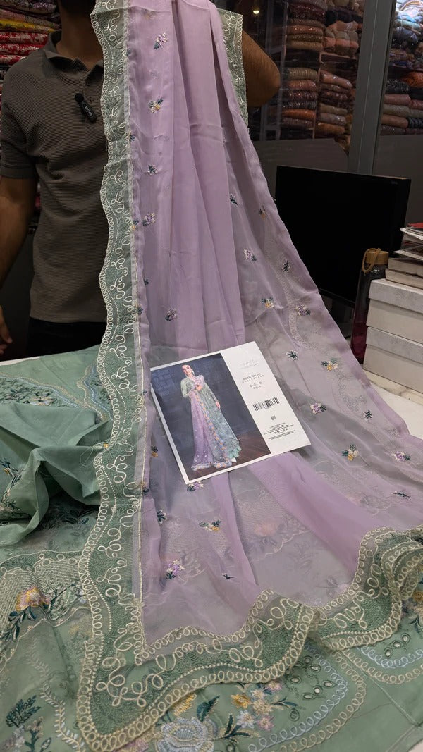 Embroidered organza dupatta patti